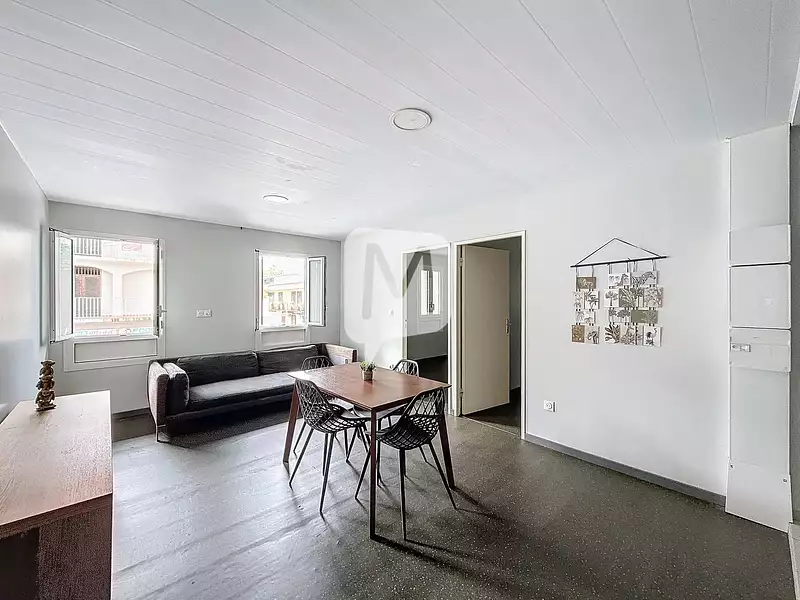 L’intérieur se compose d’une cuisine aménagée et équipée, ouverte sur un séjour lumineux de 16 m². Vous y trouverez également deux chambres de 9 m² et une salle d’eau avec WC.