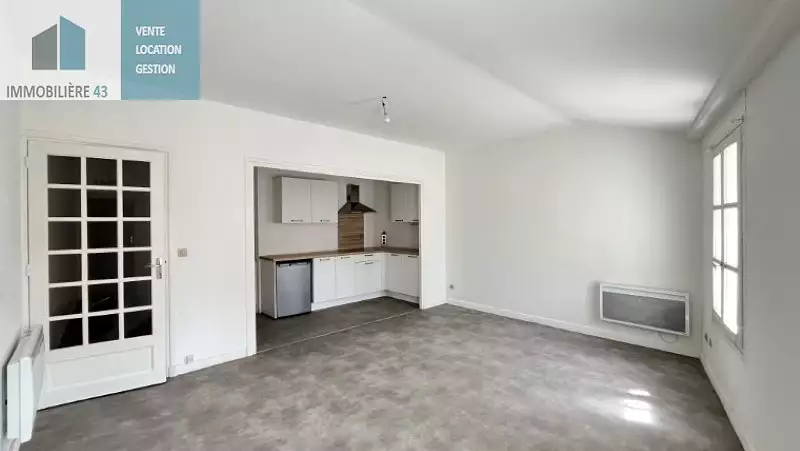 Le Puy rue Pannessac centre ville appartement type T2 49 m2 rénovation récente cuisine aménagée neuve sur séjour salon lumineux 1 chambre donnant à l'arrière calme salle de bains - wc chauffage individuel électrique 4ème étage dans immeuble avec interphone proximité immédiate commerces et écoles libre