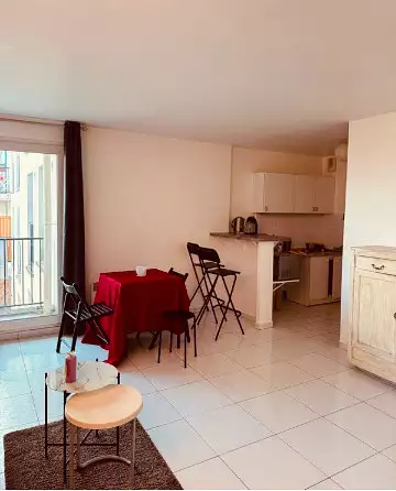 2p meuble proche tout commerces et trier bus . Cinéma et salle de sport avec plaque Induction Frigo armoire lit canapé table tabouret haut bar . Très bon état . Balcon avec vue sur l'eau sans vis à vis . Wc séparé . . Parking sous sol . Poiur personne en CDI avec garants phisyque