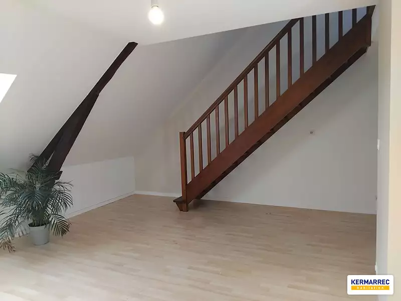 PROCHE CENTRE-VILLE, place du champ de foire, spacieux Type 3 en duplex, situé au 3e étage sans ascenseur, offrant pièce de vie avec coin cuisine ouvert, deux chambres dont une en mezzanine, salle de bains. Dispo : fin décembre - Classe énergie : D - Charges : 20 euros - Honoraires locataires : 360 euros dont 90 euros pour état des lieux - réf 5066