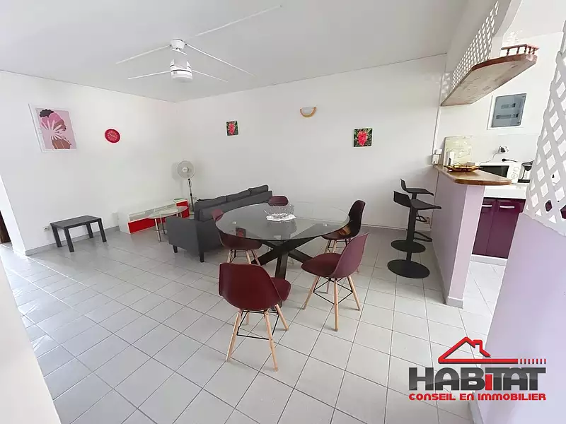 Nous vous proposons ce spacieux appartement F2 situé au1 er étage d'un immeuble en plein centre-ville sur l'axe menant à la route des plages.