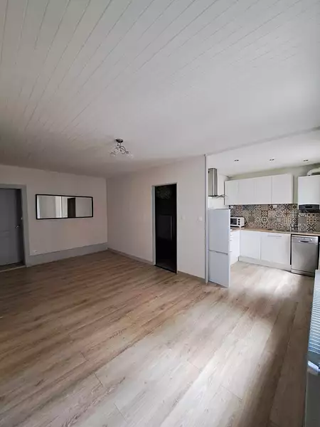 En plein centre ville, vous trouverez en second corps de bâtiment au calme un appartement 2 pièces (NON MEUBLE) comprenant une entrée, un séjour avec cuisine ouverte équipée d'une plaque au gaz, hotte, lave vaisselle et frigo. Une chambre attenante au séjour, une spacieuse salle de bains avec dressing.