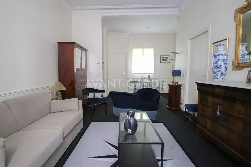 Rue Faubourg Saint-Honoré 75008 Paris - Appartement de 2 pièces meublé de 50.34 m² au 1er étage sur cour avec ascenseur d'un immeuble de très bon standing ce bien est composé d'une entrée, un double séjour salon (canapé convertible)/salle à manger, une cuisine séparée aménagée et entièrement équipée (réfrigérateur/congélateur, micro-ondes, plaques de cuisson, lave-linge/séchant, vaisselles...), une chambre avec rangements intégrés et salle de bains et un wc séparé. Chauffage et eau chaude individuels électriques.