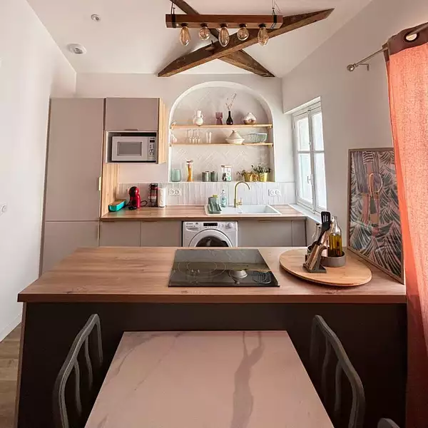 Très bel appartement entièrement refait à neuf situé place de la Fontaine Chaude, à deux pas des commerces, transports et écoles comprennent une cuisine équipée, un coin salon cosy et un coin repas, deux chambres.