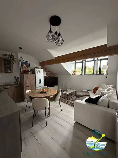 L'appartement est situé au 2ème étage . Il comprend un séjour/cuisine, deux chambres dont une est équipée de rangement, une salle de bain, un toilette indépendant, une entrée et une place de parking.
