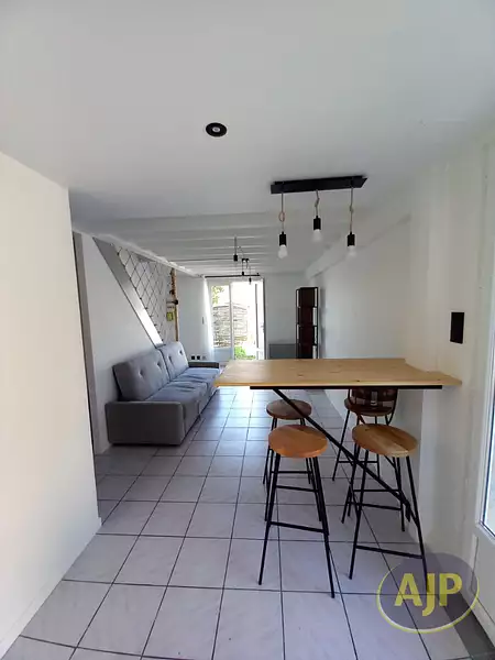 Libre de suite, Un bel appartement meublé T3 sur 1 étage composé au rez-de-chaussée, d'un séjour avec cuisine ouverte aménagée et équipée donnant sur un jardinet clos avec terrasse, une salle d'eau avec WC, un rangement et à l'étage un dégagement desservant deux chambres avec chacune des rangements. Une place de parking extérieur Loyer: 660 euros CC Dépôt de garantie: 1300 euros Honoraires d'agence: 491 euros DPE: E