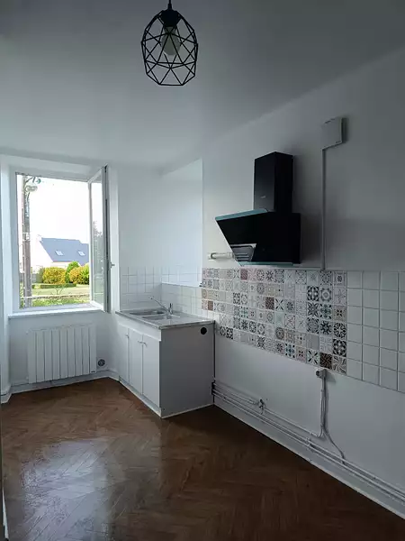 À louer, appartement T2 situé au 2e étage d’un immeuble du centre-bourg de Plouaret.