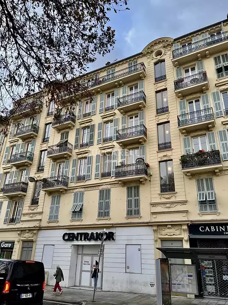 L'appartement se trouve au 4ème étage d'un très bel immeuble niçois sans ascenseur.