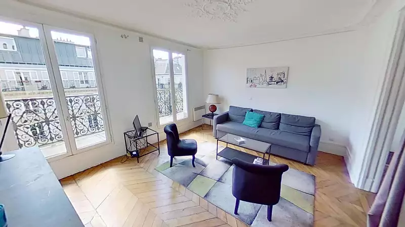 Implanté au 5ᵉ étage d'un immeuble ancien typiquement parisien, il bénéficie d'une triple exposition offrant une luminosité remarquable tout au long de la journée ainsi qu'une vue dégagée sur les toits parisiens.