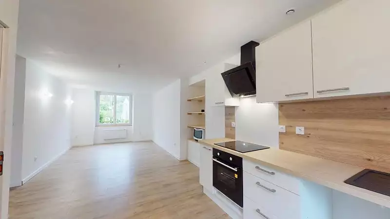 La cuisine est bien équipée avec un four et une plaque de cuisson fonctionnels. L’appartement dispose également d’un accès internet haut débit grâce à la fibre optique.