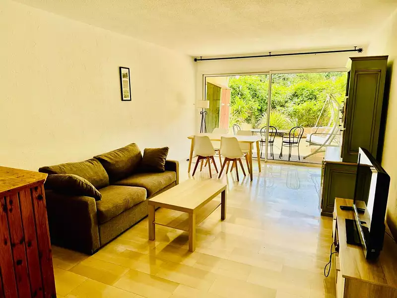GRAND 2 PIECES MEUBLE DE 57 M2 DANS UNE RESIDENCE AVEC PISCINE ET DANS UN QUARTIER RESIDENTIEL TRAVERSANT AVEC 2 JARDINS ET LOUE AVEC PARKING PRIVATIF