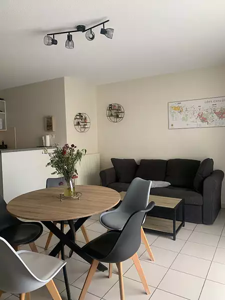T3 meublé avec place de parking privée il se compose d'une entrée, salon donnant sur un balcon, coin cuisine ouverte, deux chambres avec placards, salle de bains, WC séparé.