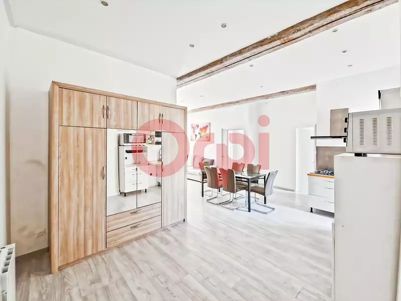 Rue Paul Bert au niveau de la Place des Maisons neuves, appartement de type 3 meublé de 58,06m² au 1er étage sans ascenseur comprenant un séjour avec cuisine ouverte, deux chambres, une salle de bains, WC.