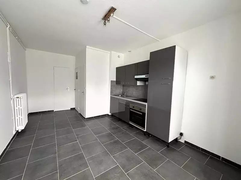Pièce de vie avec cuisine aménagée et équipée