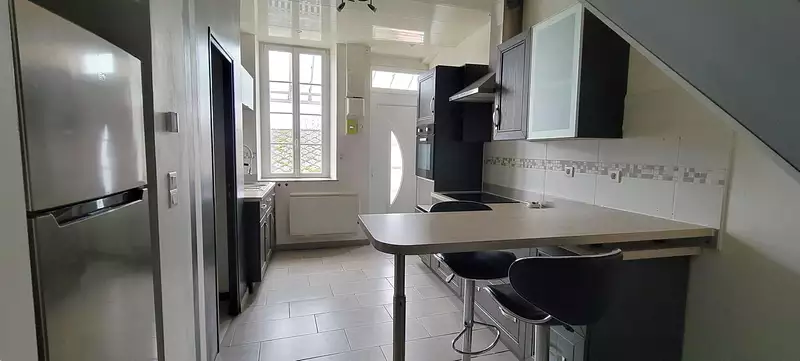 A Autun, dans immeuble de caractère, un duplex rénové et isolé de 59m² type T2 bis offrant une cuisine équipée ( plaque vitrocéramique, hotte, réfrigérateur, comptoir, meubles haut et bas) semi ouverte sur salle à manger avec placard, un salon avec fibre et volets roulants électriques, salle de douche avec meuble vasque, VMC et WC et à l'étage une chambre avec grand placard mural et un WC séparé. Jardin, remise, grenier et cave.
