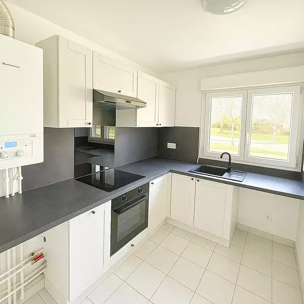 A deux pas de l'Etang du Moulin à Vent, bel appartement 3 pièces fraîchement rénové au rez-de-chaussée avec terrasse de 7m2, offrant une entrée avec placard, séjour donnant sur terrasse, cuisine aménagée, deux chambres avec placard, salle de bains et wc séparé. Un box en sous-sol et une cave. Disponible de suite.