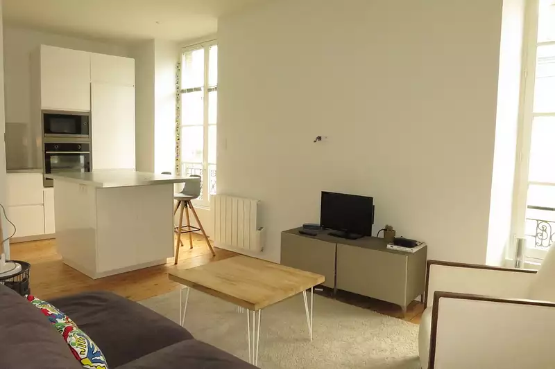 DOBREE / Appartement T3 en 2ème étage (sans ascenseur). Appartement lumineux de 60 m² entièrement rénové avec goût, comprenant un séjour sur parquet avec cuisine aménagée et équipée, 2 chambres dont 1 avec rangements, salle d'eau avec wc. Disponible à partir du 17 novembre 2025. Loyer : 926 euros Charges : 108 euros (charges communes, provision d'eau froide, taxe enlèvement ordure ménagère) Dépôt de garantie : 926 euros Honoraires charges locataire : 768 euros dont 177 euros pour la réalisation de l'état des lieux.