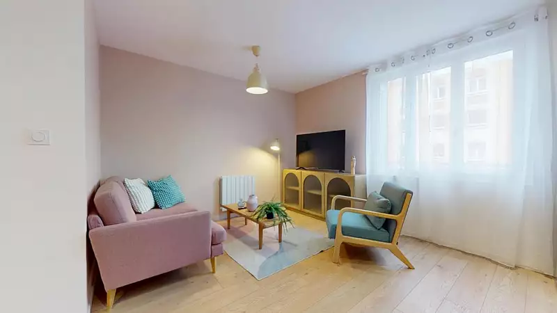 Cette colocation est composée de 3 chambres, d'un séjour de près de 23.32 m², d'une cuisine ouverte totalement équipée et d'un coin buanderie (lave-linge séchant/kit ménage).