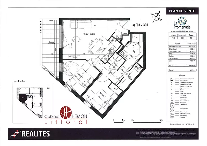 | 60,09 m² - 3 pièces - 2 chambres | 3ème étage avec ascenseur |