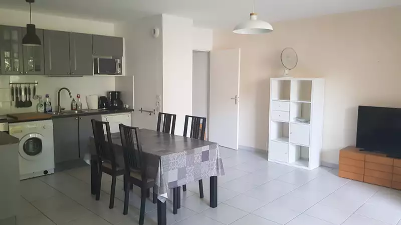 Proche des commerces, appartement en rez-de-chaussée de 60m2 T3 entièrement meublé, comprenant: Un hall avec placard aménagé, un séjour avec coin cuisine aménagée et équipée donnant sur une terrasse, Deux chambres avec placard aménagé, salle d'eau, WC indépendant. Charges comprenant: eau froide, eau chaude, entretien et éclairage des parties communes. Libre de suite.