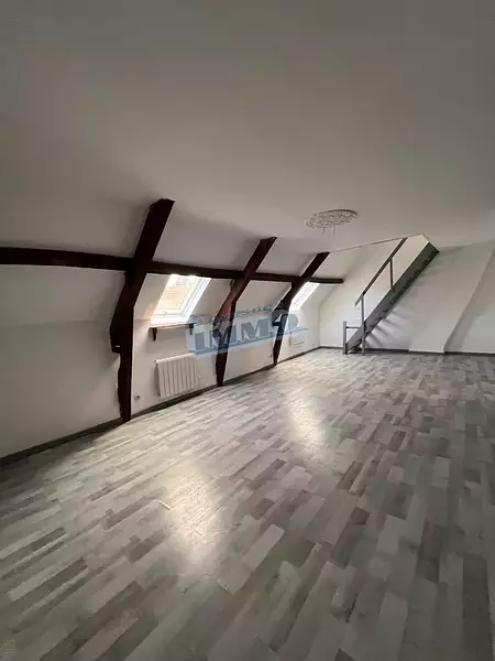 Appartement de 64 m2 situé au 2ème étage, comprenant une pièce de vie avec coin cuisine, une chambre, une salle de bains avec WC et un bureau en mezzanine. Loyer : 420 €/mois hors charges + 30 €/mois (eau et taxe ordures ménagères). Disponible de suite.