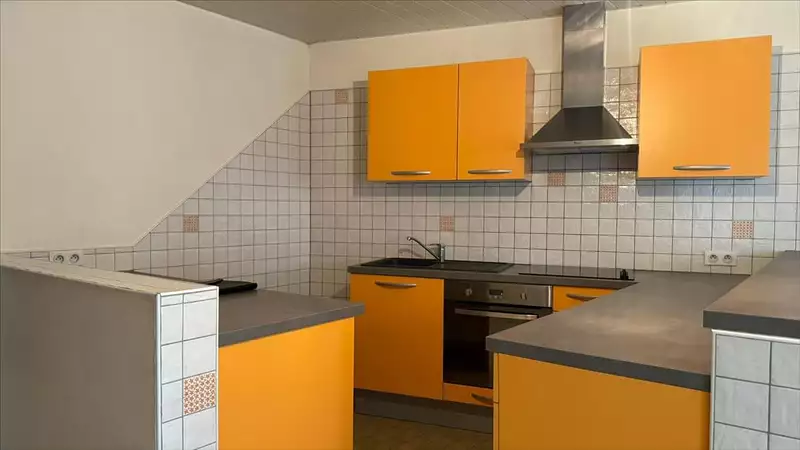 Location de type F3 comprenant : - au rez-de-chaussée : séjour avec cuisine équipée, salle d'eau avec douche, WC,- a l'étage : 2 chambres, Chauffage électrique.Petite courette. Cave.Pas de garage.
