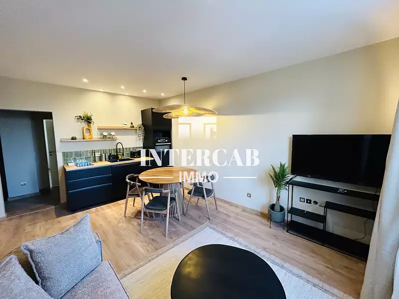 Se compose d'une pièce de vie avec cuisine aménagée et équipée, deux chambres, un jolie salle de douche et des WC séparés.