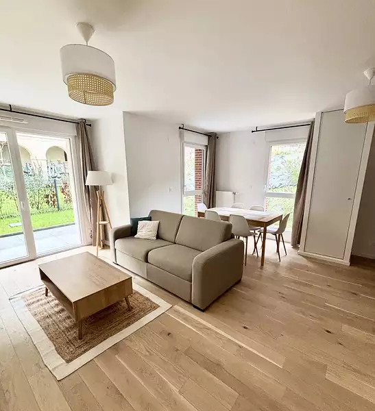 Il se compose d'une entrée, d'un vaste séjour lumineux avec salon et cuisine ouverte entièrement équipée donnant directement sur une agréable terrasse et un jardin privatif, une salle de douche avec un toilette. Une place de parking complète ce bien.