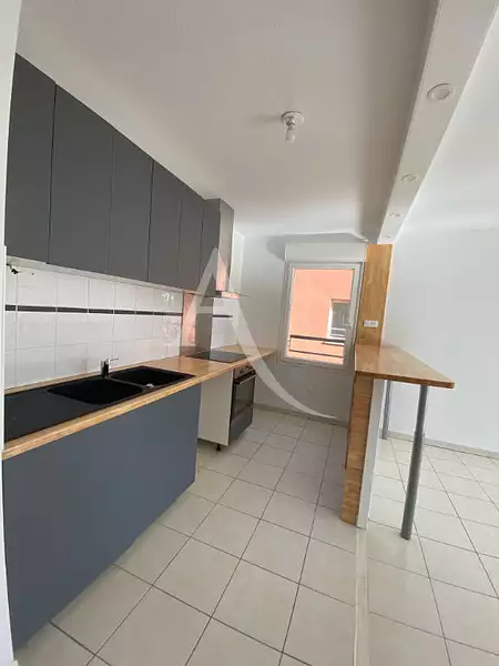 Bel appartement de type 3 situé au centre de Léguevin, au 1er étage d'une résidence sécurisée, composé d'un hall d'entrée avec placards, d'une cuisine meublée et partiellement équipée (four, plaques, hotte) ouverte sur le salon donnant sur un balcon de 10m², 2 chambres avec placards, salle de bain avec deux vasques, WC séparés. Une place de parking. Calme et lumineux. Disponible mi décembre