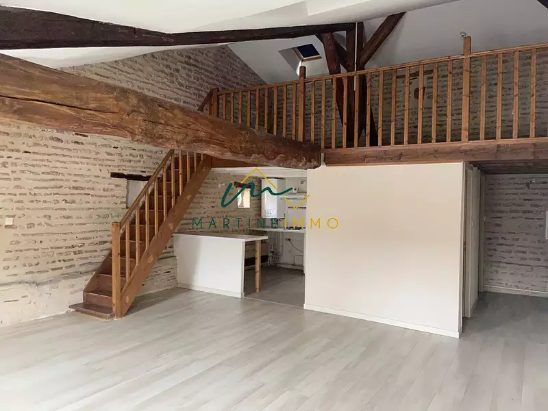 Appartement T1 Bis au deuxième étage d'un immeuble situé dans le centre ville de Marmande. Le bien se compose d'une entrée, d'un séjour avec cuisine ouverte et équipée ( hotte aspirante et plaque de cuisson ), d'une mezzanine, d'une salle de bain et d'un WC. Double vitrage et chauffage gaz de ville.