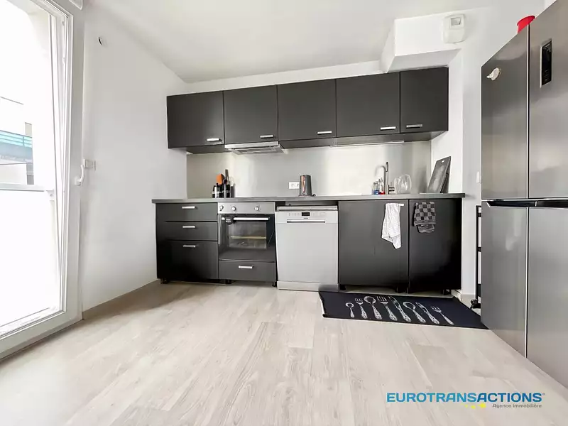 Il dispose d'une entrée, d'une lumineuse cuisine équipée ouverte sur le salon accès terrasse, d'une salle de bains et de 2 chambres.