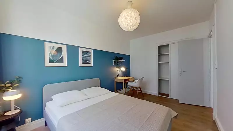 - De 3 chambres dont une disponible de 12 m2, équipée d'un lit 140x200 cm, d'un bureau et de rangements