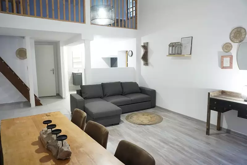 Agence Bellissimmo Narbonne vous présente: Narbonne centre ville : Situé dans un immeuble paisible à deux pas de la Place de l'Hôtel de Ville : Sublime appartement 3bis en duplex comportant un séjour avec cuisine équipée, une chambre, une mezzanine avec coin bureau et dressing, salle d'eau, WC Loué meublé pour 700 euros/mois C.C Disponible début décembre