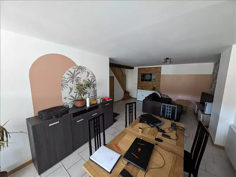 Il se compose d'une grande pièce de vie et d'une cuisine moderne semi équipée. A l'étage, deux chambres et une belle salle de bain avec grande baignoire.