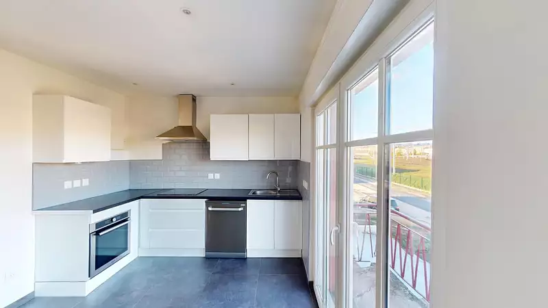 - une pièce de vie lumineuse incluant une cuisine équipée (plaques de cuisson / four / hotte / lave-vaisselle / rangement), de 30 m2 environ, avec accès à un balcon avec vue dégagée et sans vis-à-vis