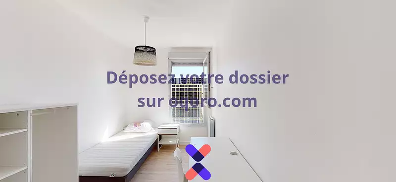 La chambre 1 de 10m2 est située à proximité de l’entrée de l’appartement. Cette chambre est toute en longueur et se compose d’un lit simple, d’une commode avec étagère et portant, d’un bureau et d’une chaise.
