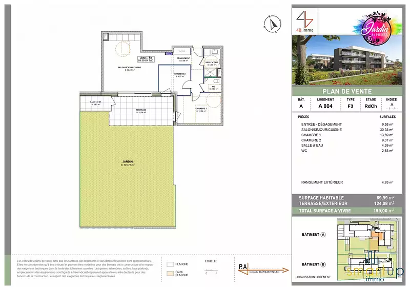 | 69,39 m² - 3 pièces - 2 chambres | Rez-de-chaussée |