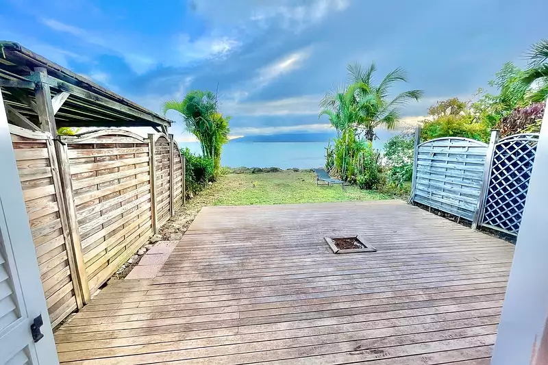 Il est composé d'une cuisine aménagée et équipée, d'un salon, deux chambres, une salle d'eau, un WC puis une terrasse donnant sur un jardin de 100M2 avec une vue mer imprenable.