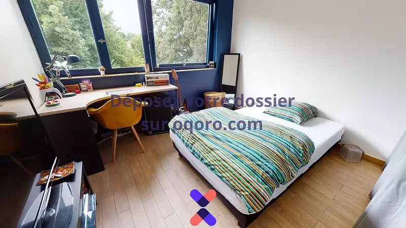 LA CHAMBRELa chambre est équipée d'un bureau, d'un lit et d'une penderie.