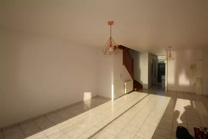 En plein centre, à deux pas des commerces, appartement de Type 3 comprenant au rez-de-chaussée: cuisine aménagée et équipée ouverte sur salon séjour, salle d'eau et wc. En duplex: 2 chambres et salle d'eau avec wc. Terrasse et garage. LIBRE.