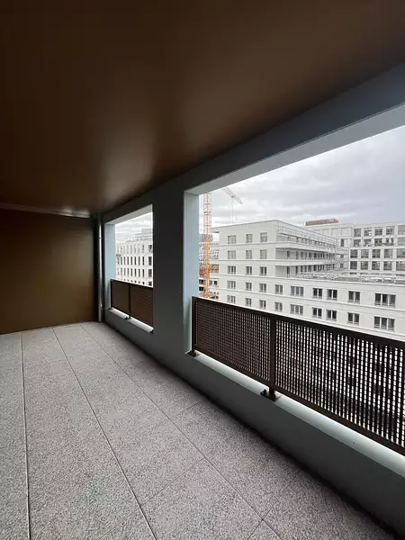 Immeuble neuf situé à l'arrière de la rue entre le Maillon et le Rhénus.