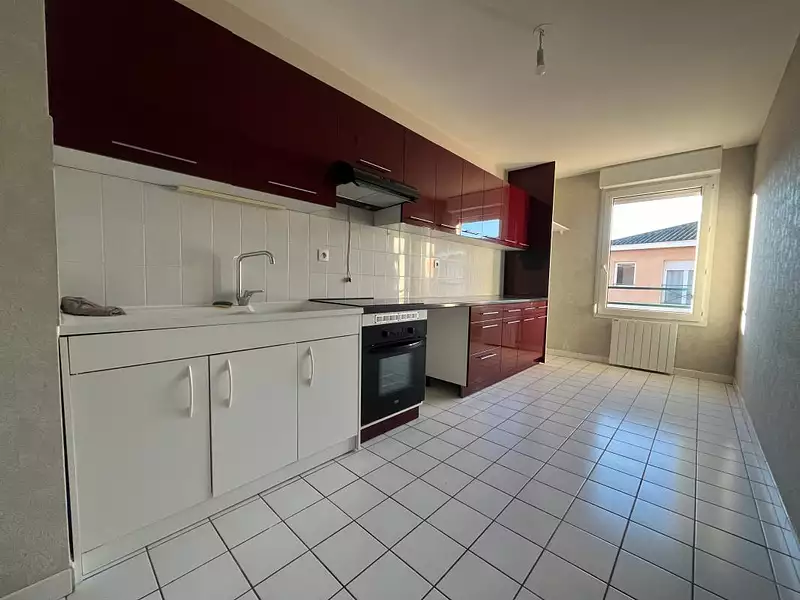 A LOUER un appartement de type 3 d'une superficie de 72m² situé au 3ème étage avec ascenseur et comprenant une entrée avec placard, une cuisine aménagée et équipée (plaque, hotte et four), un salon donnant accès à un balcon, une première chambre avec placard, une seconde chambre, une salle d'eau et un wc indépendant.
