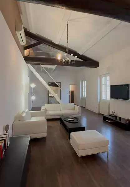 Découvrez ce magnifique loft situé au dernier étage, offrant un cadre de vie moderne et chaleureux. Entièrement meublé avec goût, il bénéficie de matériaux haut de gamme et d'une luminosité exceptionnelle grâce à ses grandes ouvertures équipées de triple vitrage garantissant calme et confort. Vous apprécierez sa chambre en mezzanine, qui confère au volume une atmosphère cosy et élégante. La cuisine entièrement équipée permettra aux amateurs de cuisine de profiter d'un espace fonctionnel et qualitatif.