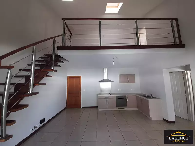 Au dernier étage d'une résidence sécurisée, appartement F4 avec mezzanine d'une superficie d'environ 72m² composée d'une cuisine équipée et aménagée, d'un séjour, d'une chambre climatisée avec placard et salle d'eau attenante, un espace buanderie, un WC indépendant et une terrasse couverte d'environ 10m².