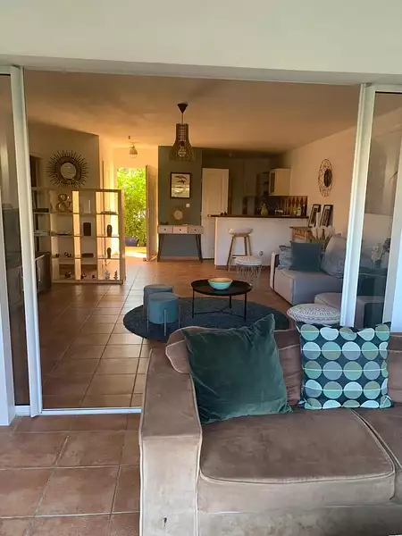 Il est composé d'une entrée, 1 wc indépendant, 1 cuisine aménagée et équipée ouverte sur un séjour, 2 chambres climatisées avec placards dont une chambre parentale avec sa salle de bain avec wc attenante, et une chambre avec sa salle d'eau attenante, terrasse, jardin, 1 place de parking privée.