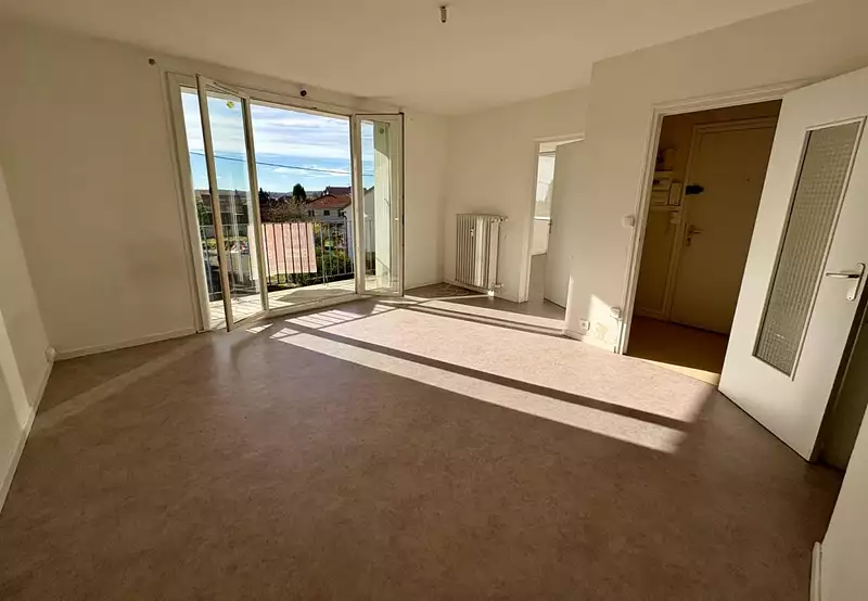 L'appartement dispose d'une entrée donnant sur un séjour large et lumineux avec accès au balcon.
