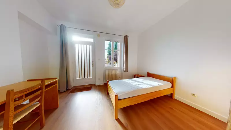 A louer chambre de 14 m2 dans un appartement en colocation, d'une surface totale de 78 m2, situé rue de l'électricité. Ce bien, à proximité du lycée Le Castel et de l'INSPE comprend : une cuisine commune équipée d'une plaque de cuisson, d'un four et d'un réfrigérateur, une salle d'eau avec WC.