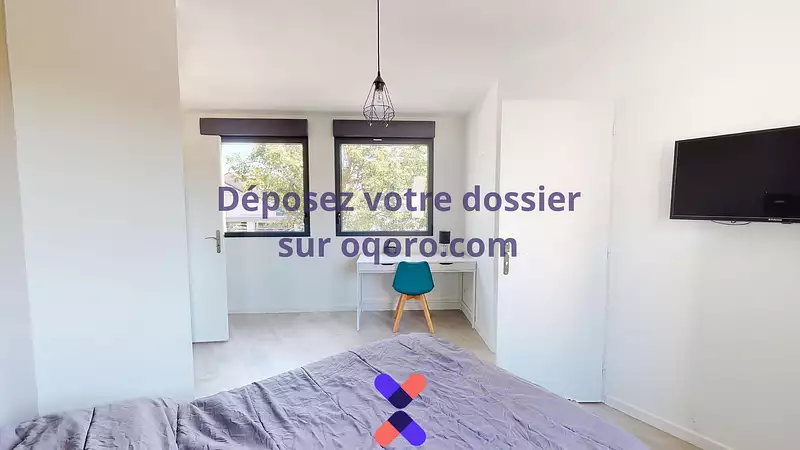Chaque chambre dispose d’une salle de bain privative munie d’un meuble vasque et d’un WC et d’une douche. Les chambres disposent auusi d’un lit double, d’un bureau accompagné de sa chaise, d’une TV murale et d’un grand placard de rangement.