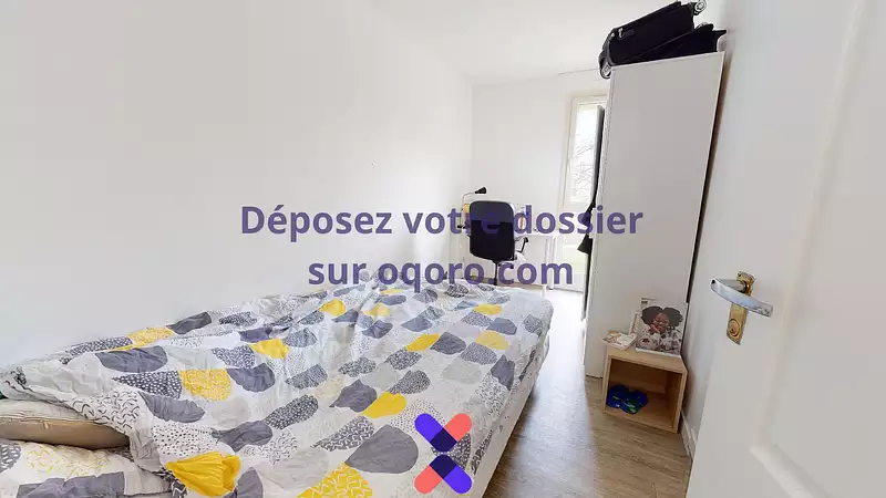 Cette chambre est meublée d'un lit double, d'un bureau simple ainsi que d'un grand placard de rangement.