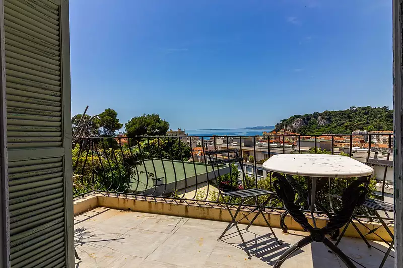 Bas Mont Boron / Port, très bel appartement de caractère de type 3 pièces d'une surface habitable de 80m², au premier étage sans ascenseur d'un hôtel particulier avec vue mer, balcon et parking privatif.